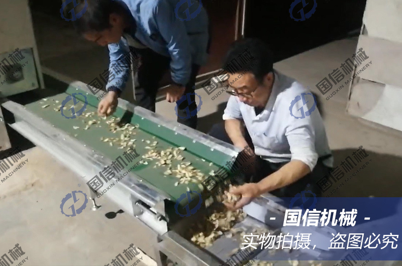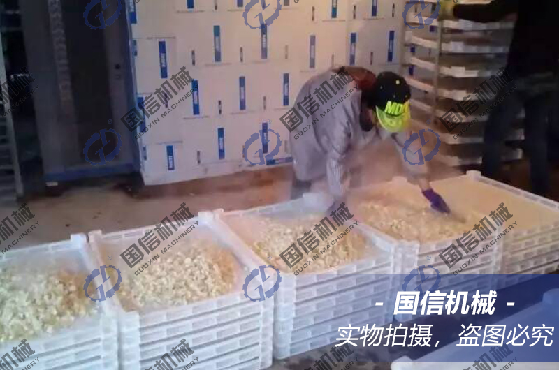 熱風(fēng)干燥:把瀝干表面水分的鱗片放入料斗內(nèi),經(jīng)自動鋪料裝置送入百合烘干機*上層進(jìn)行干燥,溫度控制在60-70℃,在網(wǎng)帶的帶動下,百合鱗片從上層往下層移動。運行中,百合片受到翻料器的翻動,同時,百合鱗片有多次往下落的過程,使百合鱗片翻動更徹底。*后,干燥至百合鱗片含水量至10%左右(手摸鱗片發(fā)脆為度),干燥好的百合干片從百合烘干機底層的出料口排出。