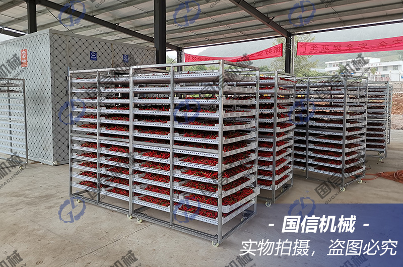 熱泵烘干可用于各種辣椒的烘干加工,設備采用模擬自然烘干技術,烘干后的辣椒干貨顏色好,外形佳,經過檢查,營養價值和有效成分也能很好保留。接下來就讓國信烘干機廠家給大家分享一下熱泵烘干辣椒的工藝步驟。