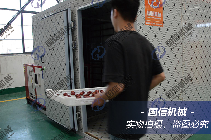 想要烘干紅棗,有動態(tài)和靜態(tài)兩種烘干方式可供選擇。動態(tài)即將新鮮的紅棗放入上料輸送機(jī)中,在鏈條的帶動下,層層循環(huán)翻轉(zhuǎn)進(jìn)行烘干;而靜態(tài)的烘干,則是將新鮮的紅棗放置在托盤內(nèi),整齊擺放在烘干房中,靜置烘干。兩種不同的烘干模式,均可以保證紅棗的烘干效果,完成品質(zhì)烘干。