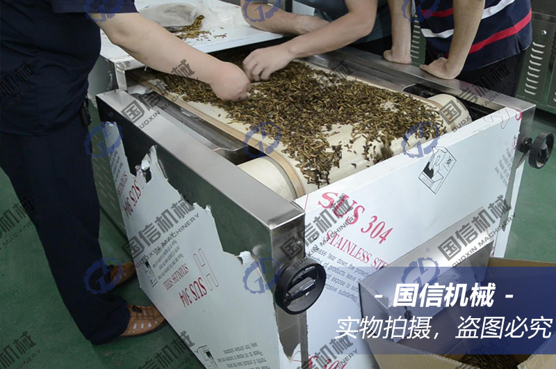 黑水虻微波烘干機整個過程無任何污染物產生,相比其他方式的烘干去水節能30%以上,符合國家環保要求,設備屬于定做設備,可根據產量大小來定做,另外還可以配備干燥時水汽冷凝回收裝置。國信機械研發生產的新型環保節能黑水虻烘干設備,可用于黑水虻、黃粉蟲、蠶蛹、蠅蛆等物料的快速烘干干燥,干燥后的黑水虻、黃粉蟲等物料色澤漂亮。烘干干燥后含水量低,膨化效果明顯,容易磨粉,有效成分得到較好保留。