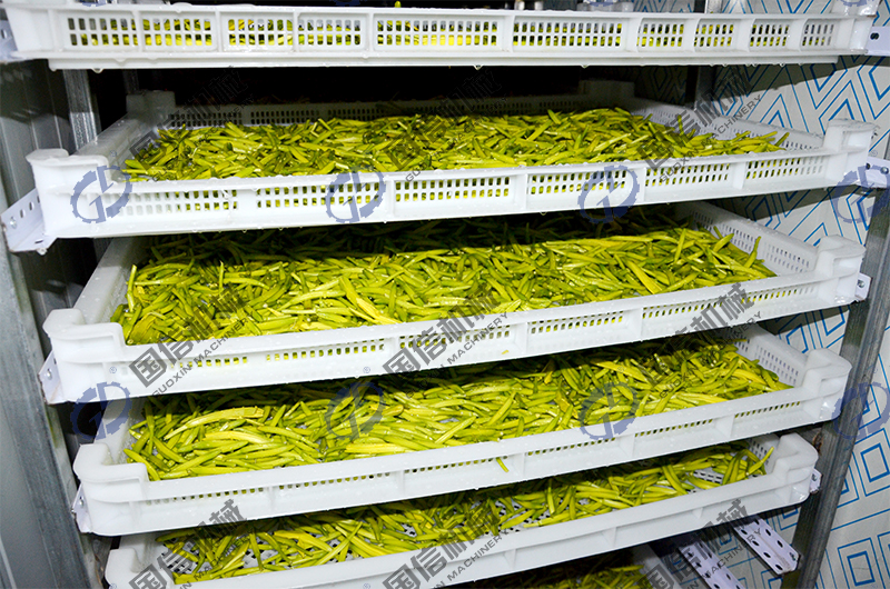公司生產(chǎn)的空氣能黃花菜烘干房是一種以空氣能熱泵為主機,以電作為熱源,烘干后產(chǎn)品品質很好且無污染物排放。使用空氣能烘干機烘干黃花菜不僅免受污染與霉變的困擾,而且設備智能化程度高,操作簡單方便,無需專人看管。使用熱泵干燥物料成為國家倡導的一種節(jié)能型干燥方式。黃花菜烘干房同時具有殺青功能,由于黃花菜在烘干前必須先進行殺青,因此才能達到護色的效果,所以在選擇設備時必須選擇具有殺青功能的烘干設備,有的烘干房不具有這種功能,而我們國信生產(chǎn)的黃花菜烘干房就有這種功能,希望需要的朋友在選擇黃花菜烘干房時要慎重選擇。