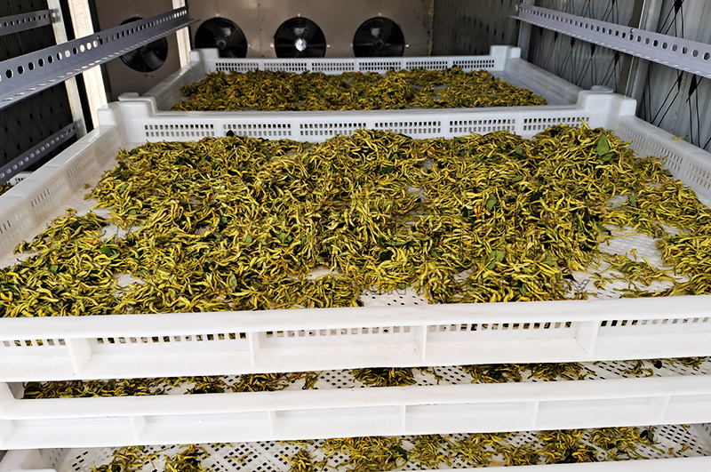 導讀:金銀花作為重要的大宗“藥食同源”的中藥材,金銀花除臨床大量藥用外,食品領域也在逐年廣泛使用,如新鮮金銀花和干花均可泡茶飲用。干品金銀花茶飲香味較低,但保持了金銀花的藥效作用,不失其保健效果。熱風循環式烘干房烘干金銀花的技術方案如下