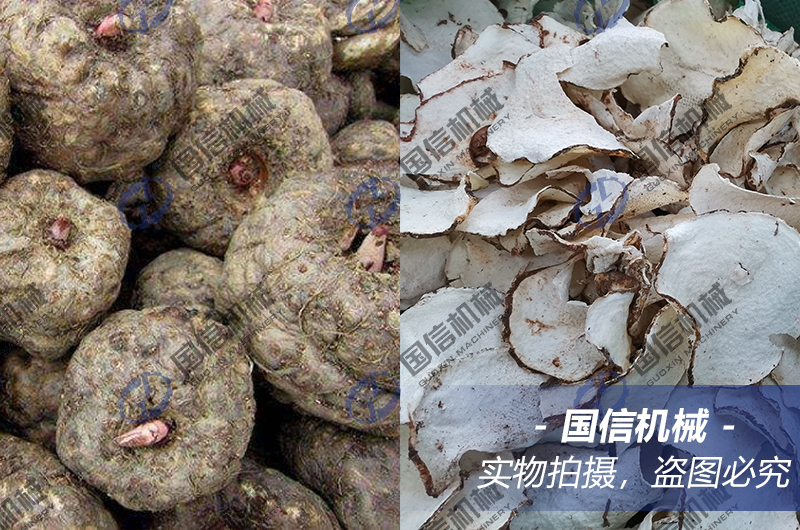魔芋去皮后,用切片機切成所需的片、條進行干燥。