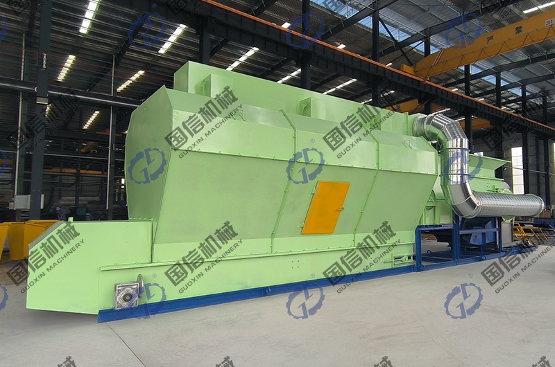 成套的垃圾分類設備包括振動給料機.輸送機.無軸垃圾滾筒篩.風選機.磁選機(可選)等。振動給料機:將舊垃圾送到給料輸送機;無軸垃圾滾筒篩:進一步篩選舊垃圾;封閉式空氣分揀機:對舊垃圾中的輕質垃圾進行分類。磁選機(除鐵器):用于篩選磁性金屬垃圾。主機采用無軸滾筒篩,不同于傳統(tǒng)滾筒篩,結構創(chuàng)新,處理能力更強,能耗更低,使用壽命更長。支撐輪采用國家標準實心橡膠輪,動能損耗小,噪音小,更環(huán)保。傳動機架由兩側雙驅動,動能強,運行更穩(wěn)定。密封箱設計,消除二次粉塵污染,使陳腐垃圾分離更加綠色環(huán)保。